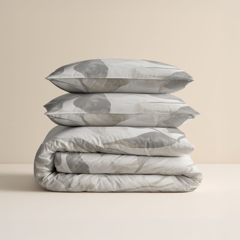 - Duurzame Print: Het Foliage-dessin is met hoogwaardige technieken op het katoen gedrukt. Hierdoor blijven de bladeren ook na vele wasbeurten scherp en behoudt de zilvergrijze kleur zijn elegantie.