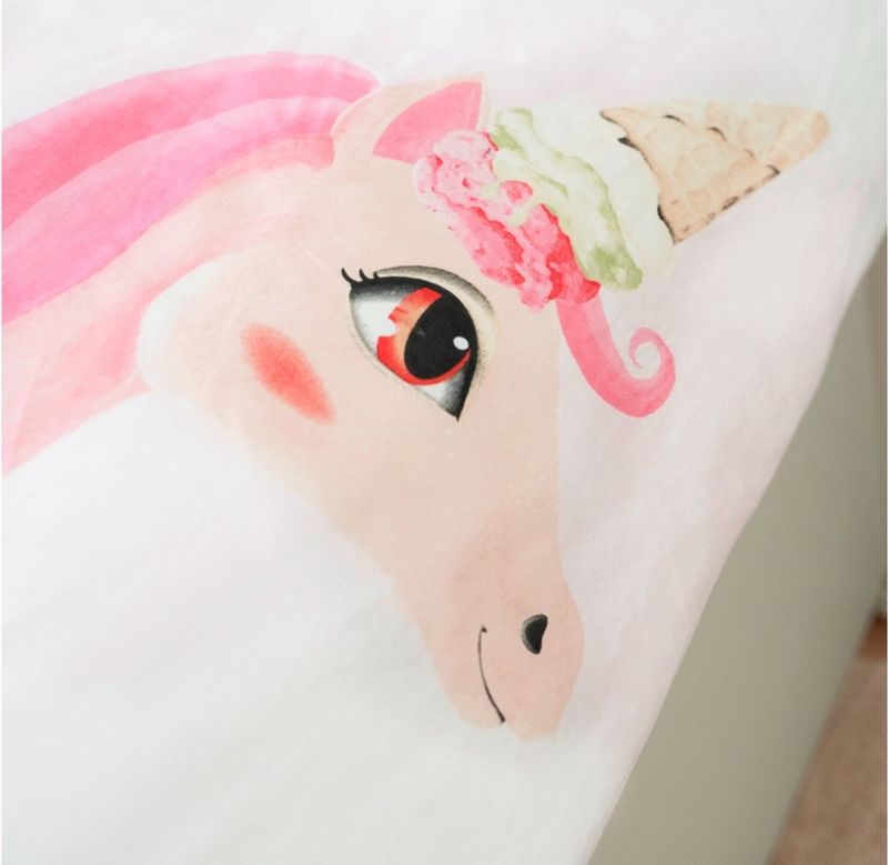 Droom weg naar een wereld vol regenbogen en glitters met het Sleeptime Unicone dekbedovertrek. Dit betoverende ontwerp met een prachtige eenhoorn is de droom van elk kind en tovert de slaapkamer om tot een sprookjesachtig paradijs.