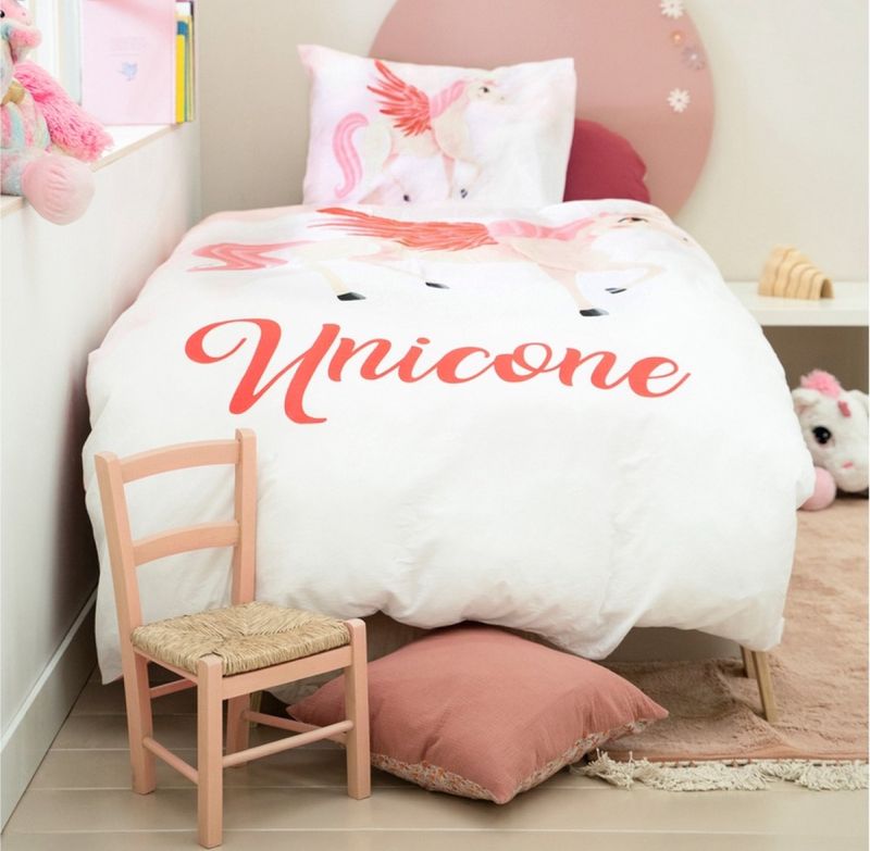Zit er een kussensloop bij de Unicone? Zeker! Het overtrek wordt geleverd als set inclusief één bijpassende kussensloop van 60x70 cm met hetzelfde magische thema.